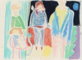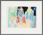 Composition with figures, 1980. Signed Tom Krøjer. Pastel on paper. Visible size 31×43 cm.