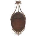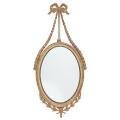 A Danish Louis XVI oval mirror in gilded and painted wood, the top with carved openwork bow and garlands. Late 18th century. H. 150 cm. W. 70 cm.