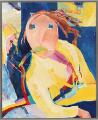 “Liva på café”, 1988. Signeret Sylvester 88; Signeret med titel og datering på bagsiden. Olie på lærred. 75×60 cm.