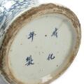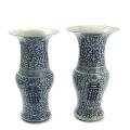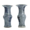 A pair of Chinese porcelain lamps, decorated in blue with foliage and double happiness sign. Marked. 19th-20th century. H. 40 cm. (2)