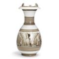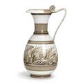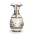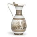 Vinkande af porcelæn, dekoreret i overglasur med ænder og ællinger i siv. Mærke fra Frederiksborglotteriet. Royal Copenhagen. Ca. 1860. H. 33 cm.