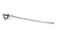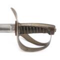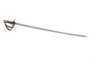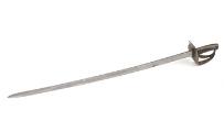 Dansk sabel M/1843 i skede mærket bl.a. BV. 45. Kurven mærket for 2. Dragonregiment og Gardehussarregimentet, klingen ca. 88,3 cm. lang mærket FREDERIKSVÆRK på brystets ene side og 1850 på den anden i skede med enkelt bærering mærket BV. 45. (1)