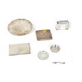 Ni dele sterlingsølv. Bestående af lav skål, kuvertaskebæger, tre små mokkaservice bakker, bordlighter med stål, nøddespyd samt to cigaretetuier. Dessin 620 B, 1061, 51 H, 366 D, 58 A, 226 A og 203 B. Georg Jensen 1933–1944 og Georg Jensen efter 1945. Vægt ekslusive del med stål 575 g. L. 7,2–12,4. Diam. 5,5–16. (9)