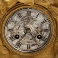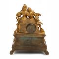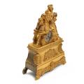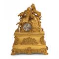 A French Louis Philipppe partly gilt bronze mantel clock, surmounted by an elegant couple, the base richly cast with shield carried by winged nymphs, festoons and ornamentation in relief, silvered dial with Roman numerals. The movement stamped Vincenti. 19th century. H. 46. W. 35 cm.