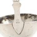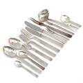 9 dinner spoons, 13 dinner knives, 11 dinner forks, 12 luncheon knives, 12 luncheon forks, 12 dessert spoons, 8 pastry forks, 12 teaspoons, 14 coffee spoons, 1 sauce spoon, 1 roast fork, 1 cold cut fork, 1 lemon fork, 1 sugar spoon, 2 salt spoons.