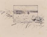 “Søparti med ænder”. Signeret monogram. Betegnet på bagsiden O. A. Hermansen. Vandfarve og tusch på kraftigt papir. Lysmål 7,5×9.