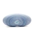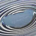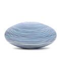 An organic blue and white striped glass object. Signed Trine Drivsholm. L. 40 cm.