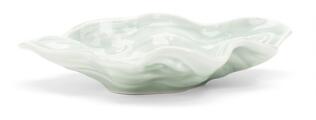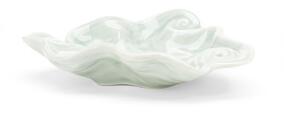 A porcelain bowl decorated with celadon glaze. Stamp signed monogram, Royal Copenhagen Gallery, 5351, 52/500. Royal Copenhagen. H. 4 cm. W. max. 14.3 cm. L. 19 cm.