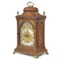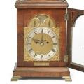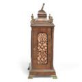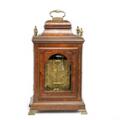 A George III striking clock in mahogany case, gilt brass dial with openwork corner ornaments, chapter ring with Roman and Arabic numerals. The movement and dial signed 'John Scott London'. England, late 18th century. H. 50 cm. W. 30 cm. D. 21 cm.