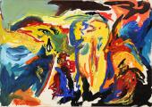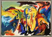 Composition. Signed Finn Pedersen. Oil on paper laid on bardboard. 42×59 cm.
