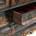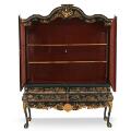Stort hollandsk rokoko vitrineskab udført med kineserier i guld på sort bund. Ca. 1760–1780. H. 225. B. 170. D. 56.