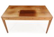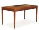 Fritstående skrivebord af palisander, opsat på tilspidsende ben, front med fire skuffer i sarg. Model 36. Udført hos Haslev Møbelsnedkeri. 1960'erne. H. 73. L. 143. B. 75 cm.