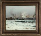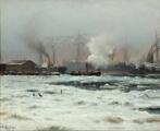Travlhed i Københavns Havn ved vintertid. Sign. H. Lübbers. 1902. Olie på lærred. 34,5×42 cm.