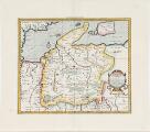 “Evrop: IIII Tab. Tab.IV. Europæ, Germaniam et Galliam Belgicam (...)”. Kort over Nordeuropa. Ca. 1730. Håndkoloreret kobberstik. Bladstørrelse 46×52,5 cm. Uindrammet.