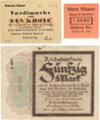 “Haderslev Købstad, Værdimærke for een Krone nd” (1945), No. 2981, rare, Bylderup Bov, Hans Nissen, “Bageri & Konditori, 1 Brød”, Germany, 50 mark, Pick 64b, as well as danish and germany emergency notes, i total 32 pcs