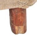 Wear due to age and use. Legs with scratches, marks, notches and chips. Some saw cracks. A back leg with crack and nail. Upholstery with stains and dirt. Lower edging loose. A back leg i cutted shorter.