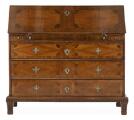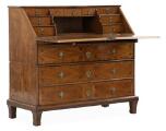 A Danish Baroque walnut bueau. Ca. 1740. Base renewed around 1800. H. 110 cm. W. 120 cm. D. 55 cm.