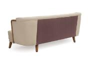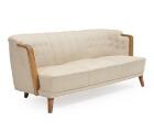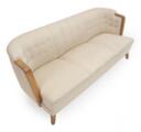 Three-seater sofa with oak legs and armrests, upholstered with button fitted light fabric. 1940s. L. 192 cm.