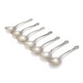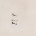 En kop med lille bund kant afslag. Fem holdere og syv skeer graveret med ejerinitialer PD. Flere sølvholdere indridset i bunden med nummer (operation mærkning). Almindelig brugspatina, herunder ridser og mærker.
