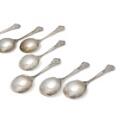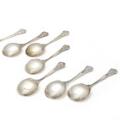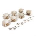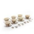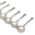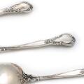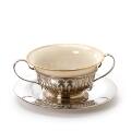Et sæt på syv par Lenox bouillonkopper af porcelæn med holdere af sterlingsølv. Sidstnævnte Watson Company, USA 20. årh. Samt et sæt på syv bouillonskeer af sterlingsølv, Gorham 1980'erne og et sæt på syv undertallerkener af sølv, Just Andersen, Danmark 20. årh. Vægt 1353 gr. Kop H. 5 cm., diam. 10,5 cm. Tallerken diam. 14 cm. (28)