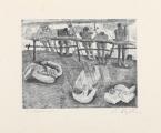 “I snorene”. Signed Svend Wiig Hansen. Etching. Visible size 38×47 cm.