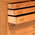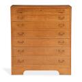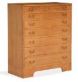 Stor kommode af patineret eg. Front med syv skuffer med messinggreb. Udført ca. 1940'erne hos snedkermester A. J. Iversen, med mærkat herfra. H. 115. W. 100. D. 45.