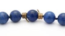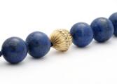 A lapis necklace set with numerous polished lapis lazuli beads and a detachable clasp. Bead diam. app. 12 mm. L. incl. clasp 59 cm. (2)