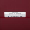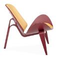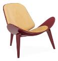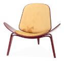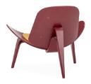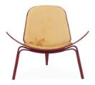 “CH 07”. Trebenet skalstol med stel af rødlakeret træ. Sæde og ryg betrukket med naturskind. Formgivet 1963. Udført og mærket hos Carl Hansen & Søn.