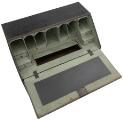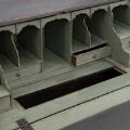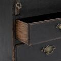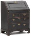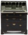 Lille svensk chatol af sortmalet træ, front med skriveklap bag hvilken skuffer og rum. 18. årh.s anden halvdel. H. 99. B. 82. D. 47.