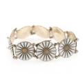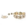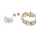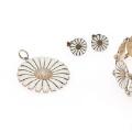 Marguritsmykkesæt af forgyldt sterlingsølv bestående af armbånd, vedhæng og et par ørestikker hver prydet med hvid emalje. Armbånd B. 17,5 mm. L. 18 cm. Vedhæng diam. 33 mm. Ørestikker diam. 11,5 mm. (4)