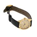 Patek Phillippe. Herrearmbåndsur af 18kt guld. Model Golden Elipse, Ref 3545. Mekanisk værk med manuelt optræk, kaliber 23–300. Champange farvede skive med sorte indeks og visere. Sort kalveskindsrem med Patek C- spænde af 18kt guld. Urets diameter 32×27 mm. 1970'erne.