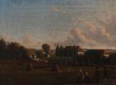 Harvest scene. Signed Poul Nyholm, indistinctly location and date. Oil on canvas. 26×35 cm.