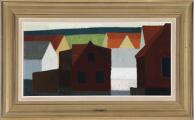 Gudhjem. Sign. AM. Olie på lærred. 33×64.