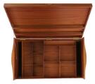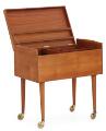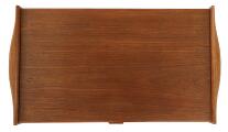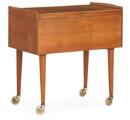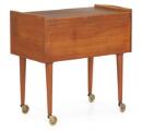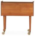 Teak sewing table with brass castors. Inside with trays and storage. H. 62 cm. L. 63 cm. W. 36 cm.