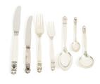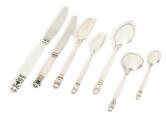 “Acorn”. Sterling silver luncheon cutlery set. Georg Jensen 1933–1944, 1945–1951 and after 1945. Weight excluding pieces with steel 1663 g. (70)