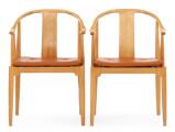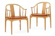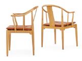 “Kinastolen”. Et par armstole af kirsebærtræ. Sædehynde betrukket med brunt skind. Model 4283. Formgivet 1944. Manufactured and marked by Fritz Hansen, 1986. (2)