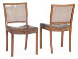 Set of four birch chairs. Back with woven cane. Seat upholstered with original Niger leather. Fitted with brass nail. Manufactured and marked by Fritz Hansen, 1940s. (4)