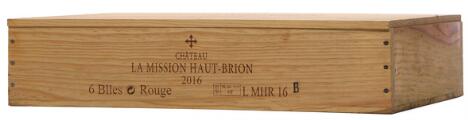 6 bts. Château La Mission Haut Brion Grand Cru Classé, Pessac-Léognan 2016 A (hf/in). Owc.
