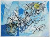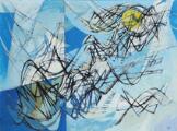 “Vinter-Seismograf”, 1968. Signeret HE samt Helge Ernst med titel og datering på bagsiden. Olie på lærred. 97×130 cm.