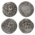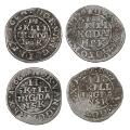 Norge, Frederik III, 2 skilling 1656, 1664, 1666, 1667, H 70B, 70E. (4)