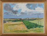 Landscape with drifting clouds. Signed Axel P. J. Oil on canvas. 73×100 cm