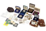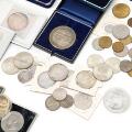 Danmark, samling årgangsmønter i fem album inkl. 2 øre 1926; 10 øre 1884; 1 kr 1875 (2), 1915, 1916, 1959; 2 kr 1875, 1876, 1916, 1924, 1959; Ag erindringsmønter 1892, 1906, 1923, 1930 (2), 1937, 1958 (2), 1960 (2), 1964, 1967 (5), 1968 (2), 1972; medaljer fra Panimex, Ag (925/1000), 24 g (2); Sverige, 1 kr 1875; England, Crown 1981, Ag; Samoa, Tala 1977, Ag; Tyskland, skydemedalje 1961, Ag (835/1000), 46,90 g; Østrig, Thaler 1780 nypræg. Derudover ca. DKK 400,-.