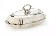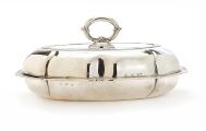 A Danish Rococo style lidded silver dish. Cohr 1930. Weight 1079 g. L. 31 cm.