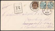 1875. 16 øre + pair 4 øre on REC.-cover cancelled KJØBENHAVN 15.7 sent to (pr) Charlottenlund Station. [ ✉ ]