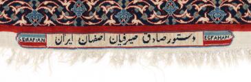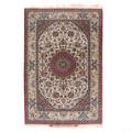 A signed Seirafian Isfahan rug, Persia. Medallion design on an ivory field. Fine drawing. Signed: Made for Seirafian Isfahan Iran. Knotted with korkuld on silk warps, c. 750.000 kn. pr. sqm. Ca´. 1960. 170×112 cm.