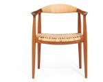 “The Chair”. Armstol af massiv teak. Sæde og ryg udspændt med flet. Model JH 501. Formgivet 1949. Udført 1950'erne hos snedkermester Johannes Hansen, stemplet.