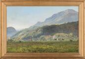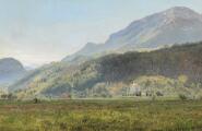 Scenery from Lake Lucerne, Brunnen. Signed and dated J l C. 2 juni 1874, Brunnen. Oil on canvas. 45×67 cm.