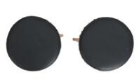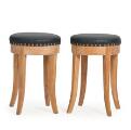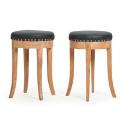 Pair of elm stools, upholstered in black leather fitted with brass nails. 1940s-50s. (2)