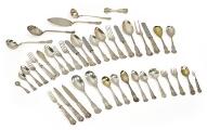 Germany: 3 spoons with gold-plated laf, 12 lunch knives, 12 lunch forks, 12 dessert spoons.