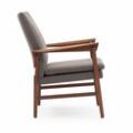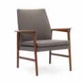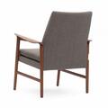 Armstol med stel af teak. Sæde og ryg betrukket med grå uld. Formgivet 1964. Udført hos Fritz Hansen.